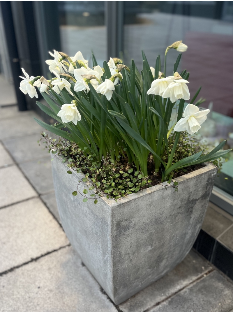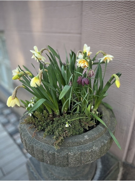 Färgalternativen för lökblommorna är vit, gul, aprikos, orange eller blå.